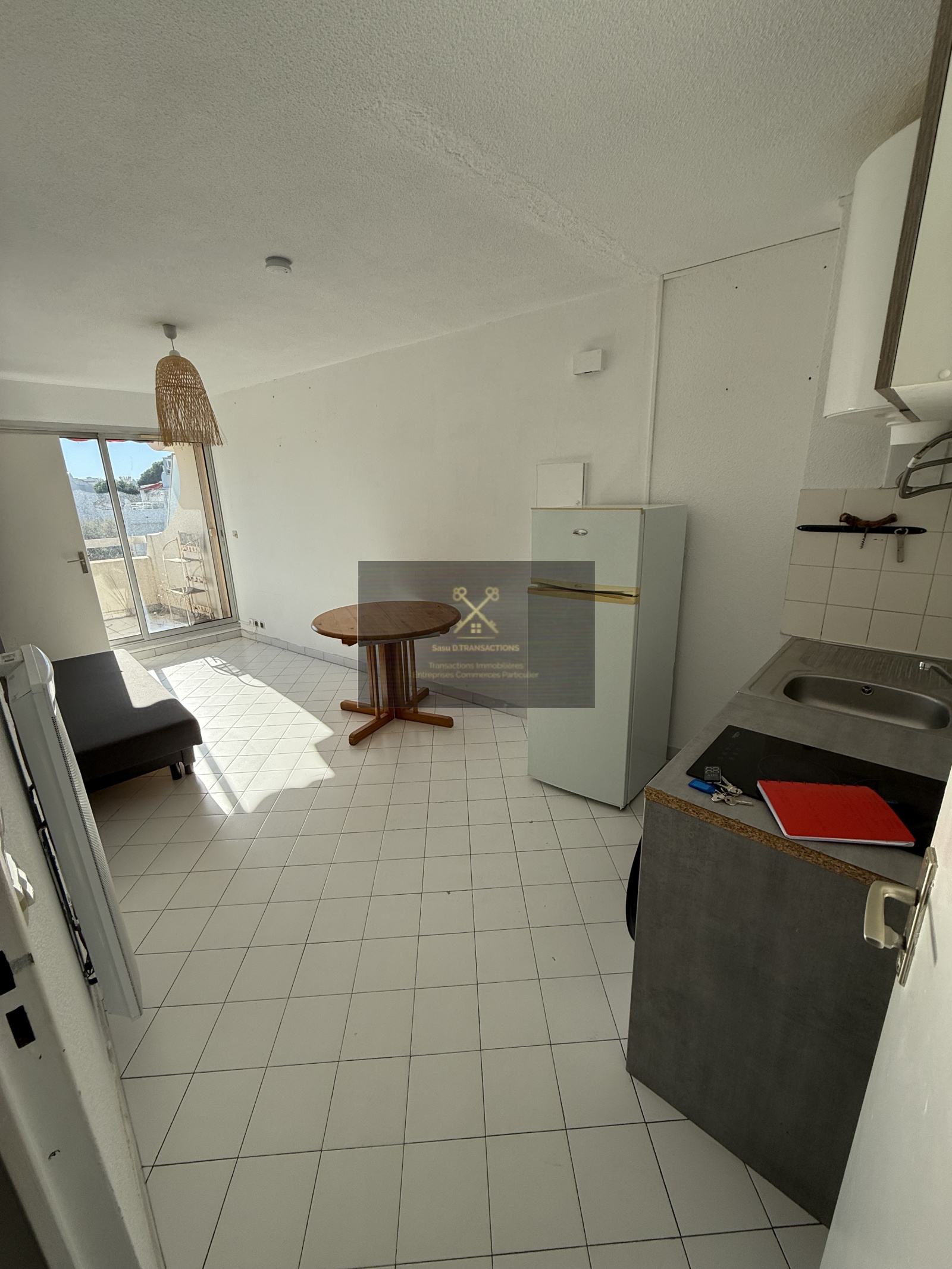studio plein sud proche plage , 2 pièces 1 séjour avec emplacement lit superposé + 1 chambre indépendante lit double kitchenette placards et frigo et lave terrasse de 5M2 chauffage électrique récent volet roulant double vitrage salle d'eau avec douche et lavabo placard orientation sud très ensoleillé 3ème et dernier étage (pas d'ascenceur) place de parking sécurisé local vélo parties communes et parking refait pas de travaux copro à prévoir taxe foncière environ 700€ charges copro environ 900€ valeur locative à titre indicatif environ 600 à 700€ Dig DPE C/A prix 143000€ F.A.I.